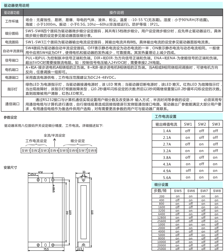全系列提供8檔電流、16檔細分設置